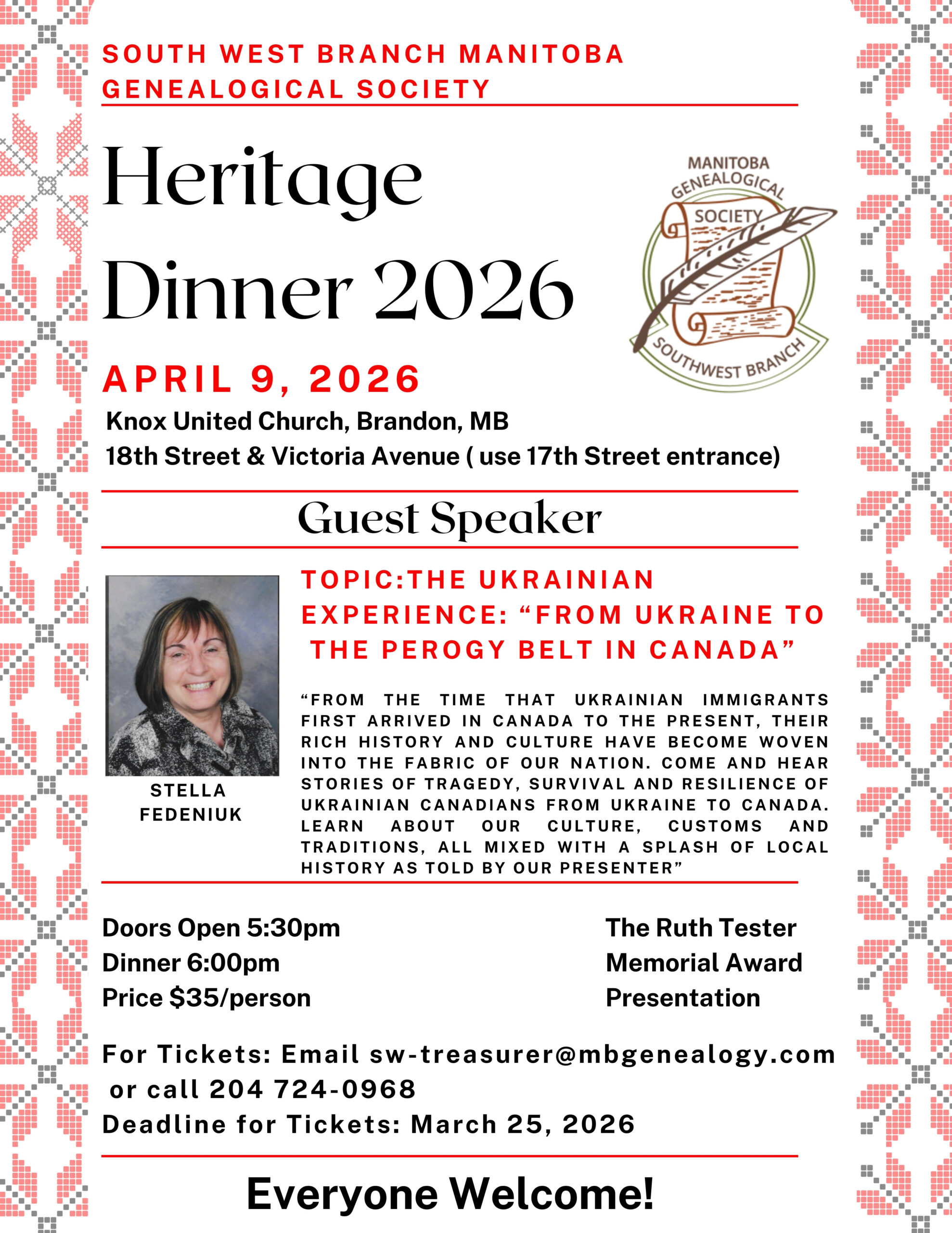 Annual Heritage Dinner April 9/26- see attached poster for full details.